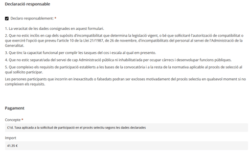 Hecho todo esto, llegarás a las tasas de examen. Los derechos de examen para el sistema general de acceso libre son de 41,35€.